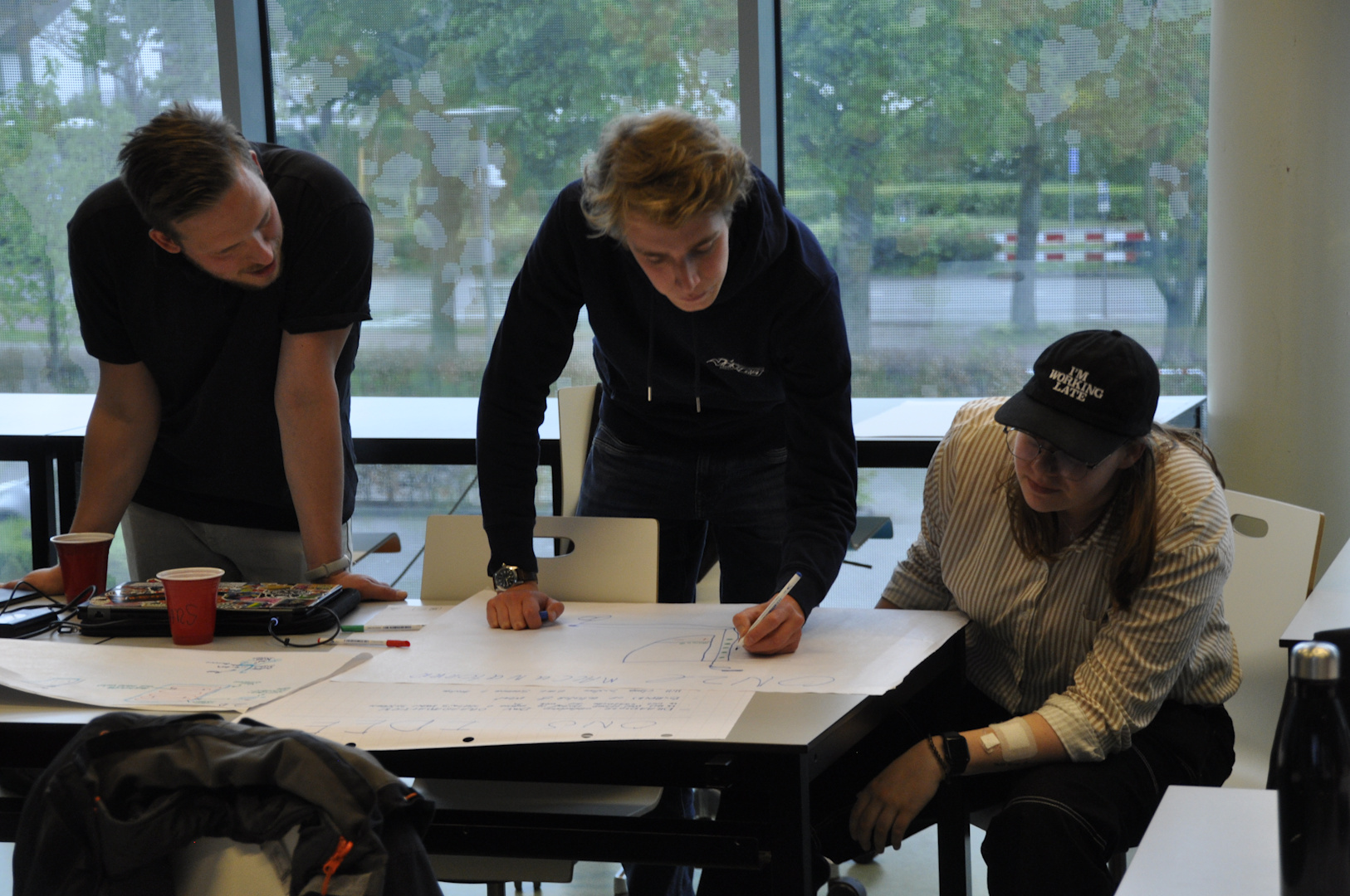 Gedurende de middag hebben we in teams nagedacht over het verbeteren van een gestuurde rollator voor ouderen. Er is nagedacht over oplaadpunten zoals dockingstations en laadmatten, maar ook over het vermijden van obstakels en zelfs het detecteren van traptreden.